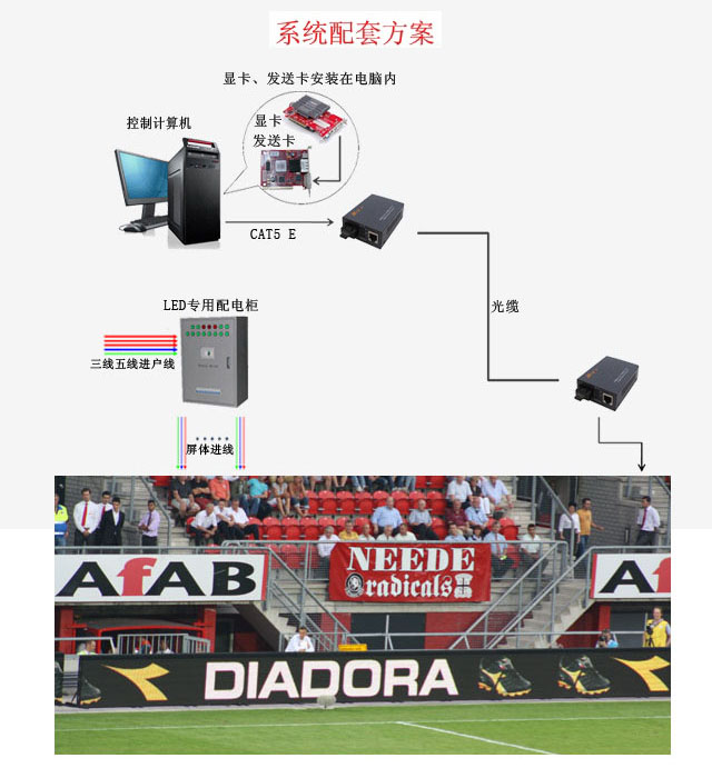 3、采用高效的光纤传输系统,有效减少了足球场上传输距离较远而造成信号延迟现象,保证了画面播放一致性。